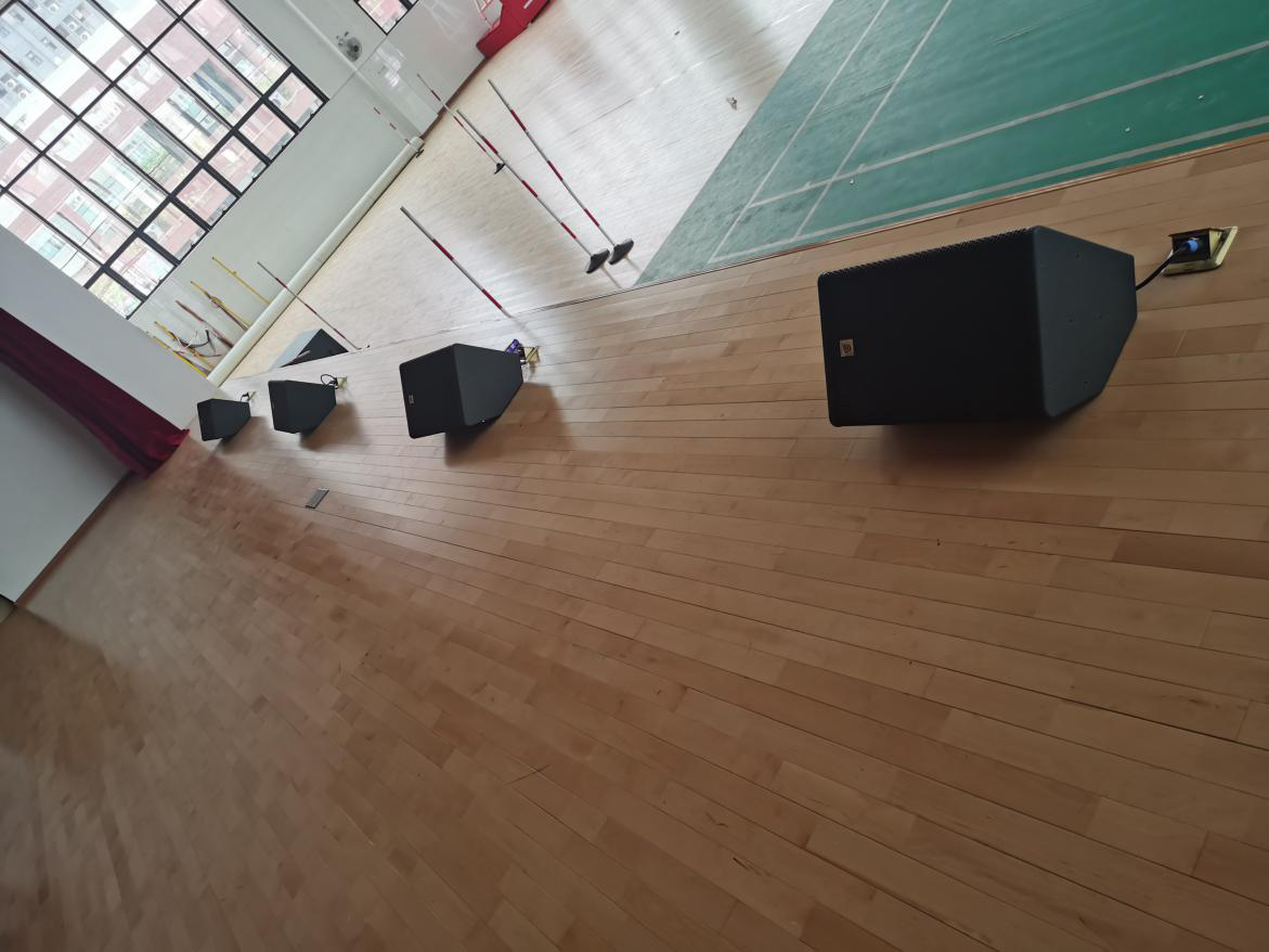 該擴(kuò)聲系統(tǒng)設(shè)計(jì)功能明確,以BAIANGDE TZ系列線陣為主擴(kuò)聲音箱,舞臺上方左右各4只TZ-210,搭配2只TZ-218S超低頻音箱使用,超低頻音箱擺放在舞臺前方左右兩側(cè),考慮到體育館深度的問題,為了保證聲音的均勻度,后場采用6只MT-12作為補(bǔ)聲音箱,每邊三只。整個(gè)擴(kuò)聲系統(tǒng)為觀眾帶來一個(gè)音質(zhì)真實(shí)、中高低頻層次豐富,動態(tài)飽滿的擴(kuò)聲效果。 由于學(xué)校經(jīng)常有演出,考慮到表演人員能及時(shí)獲取現(xiàn)場演出效果而做出更好的調(diào)整和發(fā)揮,舞臺上則采用了4只MC-12作為返聽音箱,整體擴(kuò)聲充分考慮各區(qū)音質(zhì)效果,為觀眾建立了一個(gè)音質(zhì)真實(shí)清晰,動態(tài)充沛有力的聽覺環(huán)境。